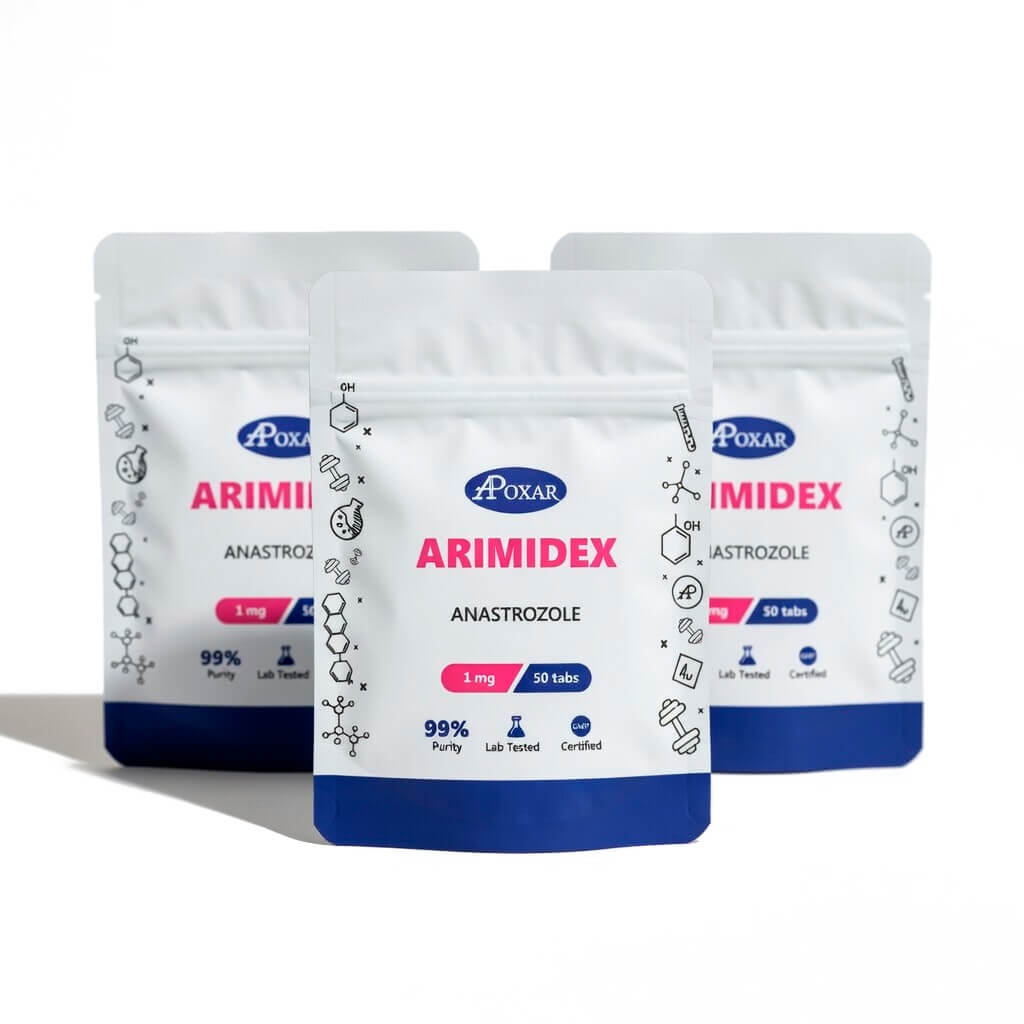 Buy Arimidex online from Roids101 — Anastrozole 1mg per tablet, 50 tabs per pack by Apoxar. It’s the most widely used aromatase inhibitor in bodybuilding for one reason: it keeps estrogen under control predictably, without nuking your E2 into the ground.