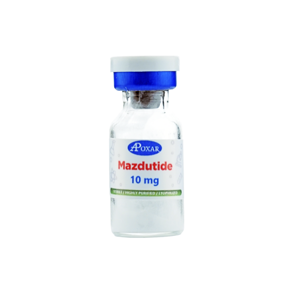 Mazdutide is a dual GLP-1/glucagon receptor agonist developed for weight management in adults. This Apoxar vial contains 10 mg lyophilized powder. You buy mazdutide in Canada when you want the newest dual-agonist weight loss peptide alongside or instead of tirzepatide or retatrutide.