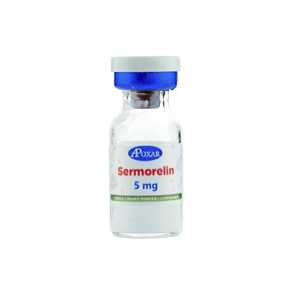 Sermorelin is a synthetic analogue of growth hormone-releasing hormone (GHRH) consisting of the first 29 amino acids of the natural 44-amino-acid sequence. It stimulates your pituitary gland to produce and release your own growth hormone. This Apoxar vial contains 5 mg lyophilized powder. You buy sermorelin in Canada when you want the benefits of elevated GH without injecting exogenous growth hormone directly.